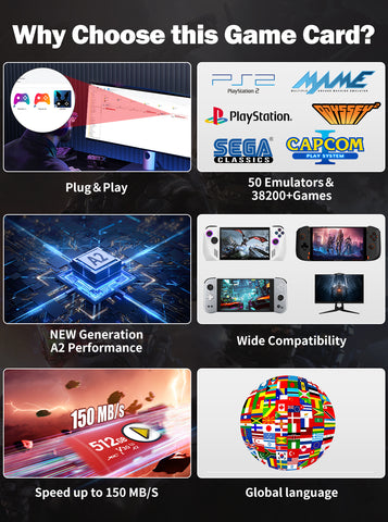 512G Game Card for ROG Ally/Ayaneo/OnexPlayer/Handheld Game Consoles/PC for PS3/PS2/SS/PS1/PSP/DC/MAME 50+Emulators&38200+Games