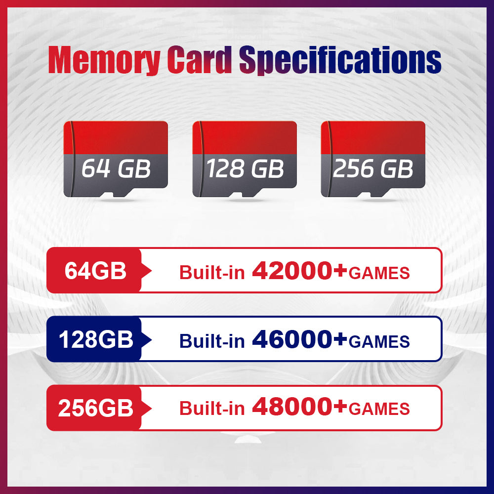 Plug and play, 480,000+ games (256GB) installed, and 10,000+ 3D games included. It also supports saving game progress/status, casual games, competitive games, sports games, single player games, multiplayer games