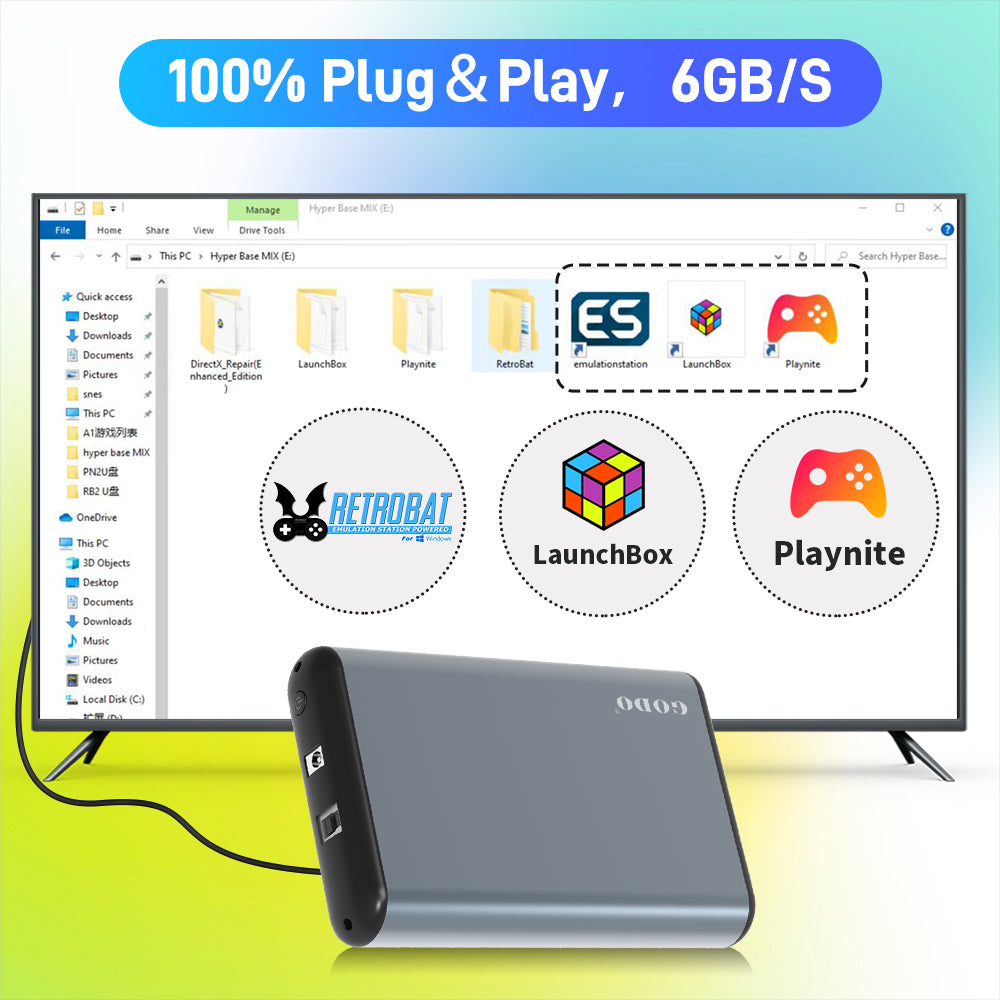 The game hard disk hyper base mix is 100% plug-and-play, no driver, no download and installation, directly run the game and manage the game library in Windows, no need to switch systems !